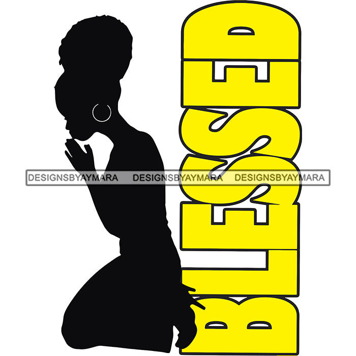 Afro Silhouette Woman Praying God Blessed Quotes SVG Cutting Files