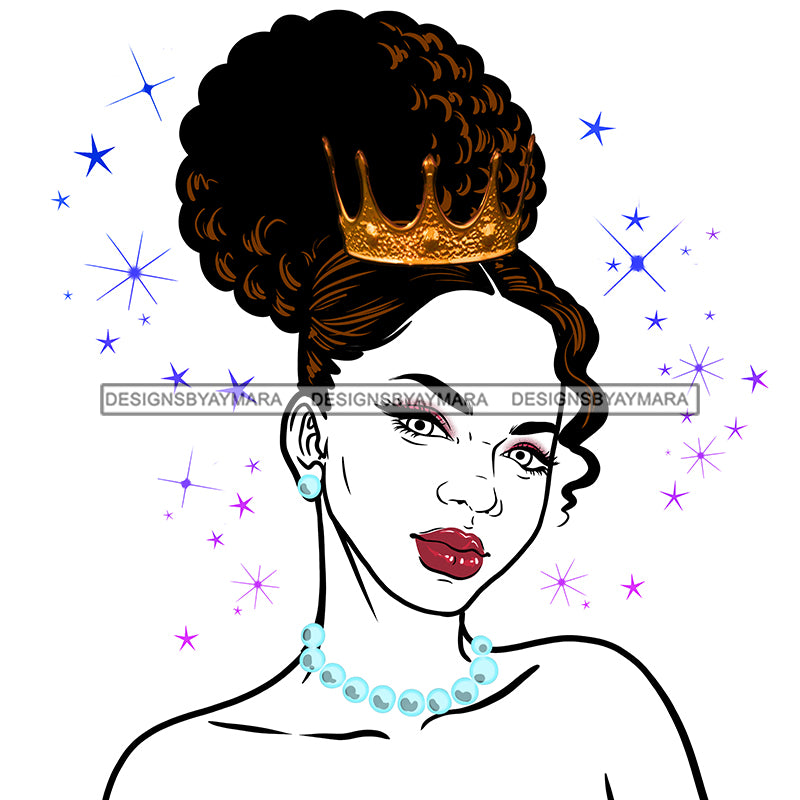 Beautiful Black Queen Hair Up With Crown And Pearls JPG PNG Clipart Cricut Silhouette Cut Cutting