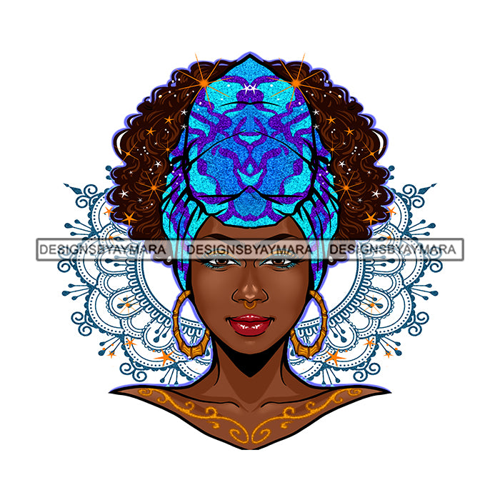Beautiful Black Woman Wearing Blue Headwrap JPG PNG Clipart Cricut Silhouette Cut Cutting