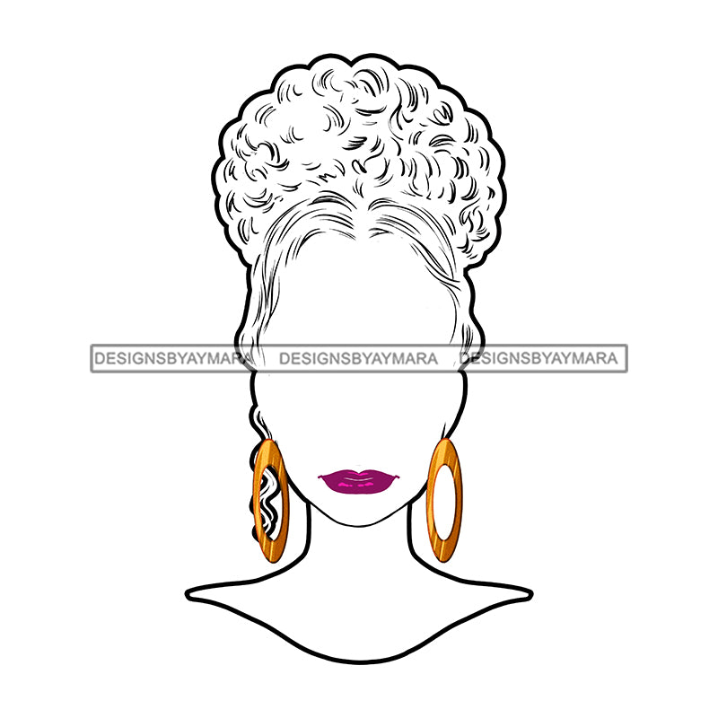 White Curly Silhouette Afro Woman Purple Lips Gold Round Earrings JPG PNG Clipart Cricut Silhouette Cut Cutting