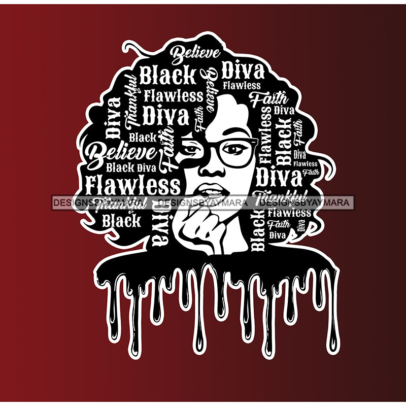 Black Diva Flawless Dripping JPG PNG Clipart Cricut Silhouette Cut Cutting