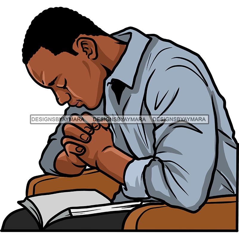 Black Man Praying JPG PNG Clipart Cricut Silhouette Cut Cutting