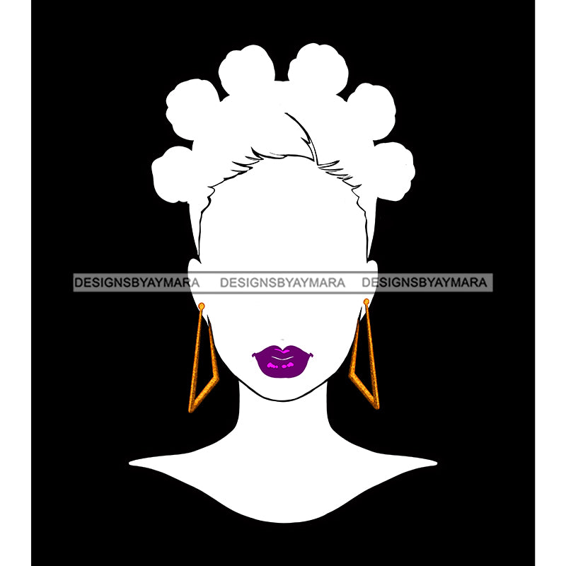 White Silhouette Woman Face Purple Lips Afro Puffs JPG PNG Clipart Cricut Silhouette Cut Cutting
