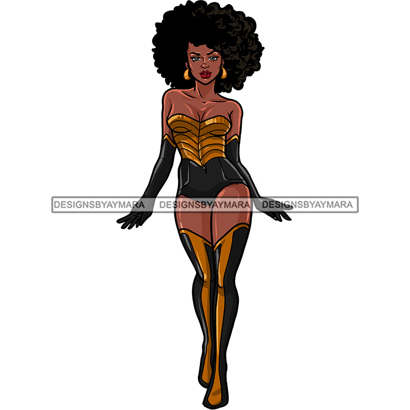 Black Super Hero Woman Green And Gold Big Afro Clipart JPG PNG Clipart Cricut Silhouette Cut Cutting