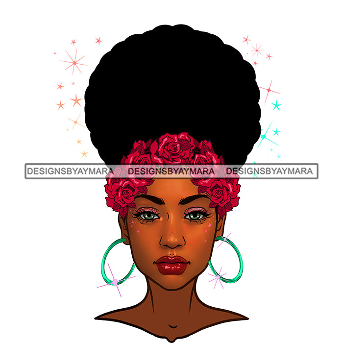 Black Woman Brown Face Afro Red Roses JPG PNG Clipart Cricut Silhouette Cut Cutting