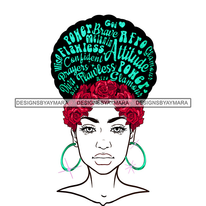 Black Woman White Face With Words In Hair Afro Red Roses JPG PNG Clipart Cricut Silhouette Cut Cutting