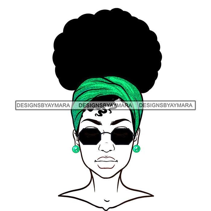 Black Woman Black Hair Green Headwrap Glasses JPG PNG Clipart Cricut Silhouette Cut Cutting