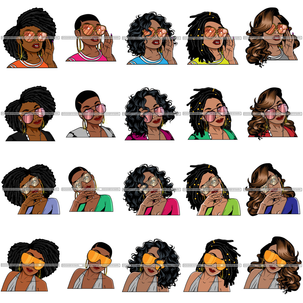 Bundle 20 Designs Afro Lola Black Woman Wearing Fashion Glasses Melanin Nubian Unique African American Graphics SVG PNG JPG Cutting Files Silhouette Cricut