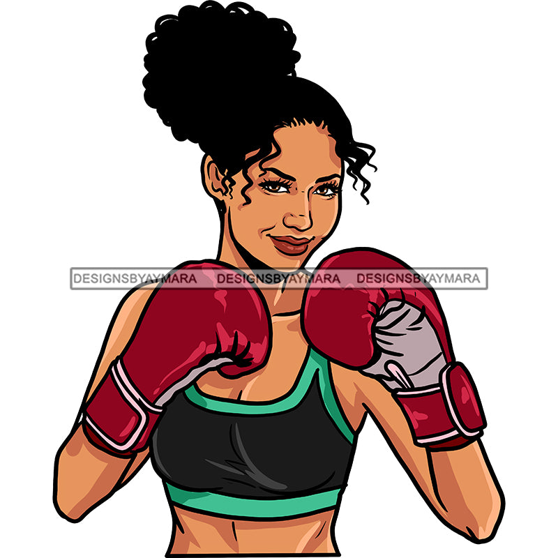 Black Woman Boxer Boxing In Green And Black With Red Gloves JPG PNG Clipart Cricut Silhouette Cut Cutting