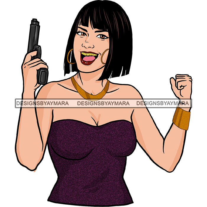 Gangster Gangsta White Caucasian Woman With Gun Purple Top JPG PNG Clipart Cricut Silhouette Cut Cutting