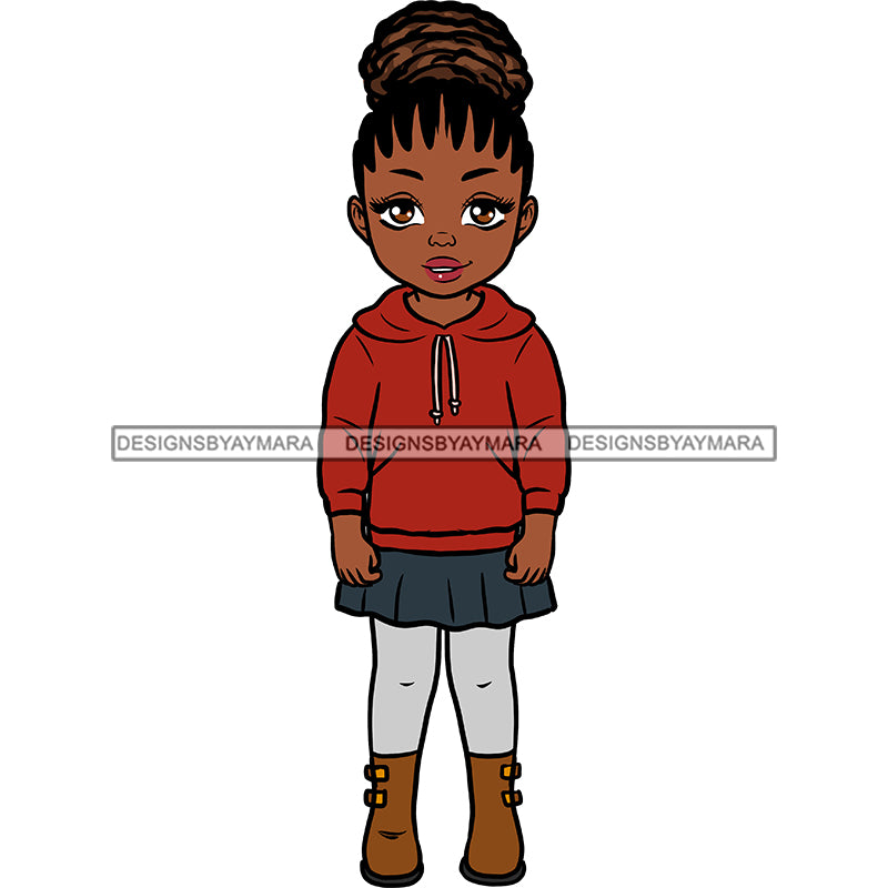 Little Black Girl In Red Hoodie And Boots Wide Eyed JPG PNG Clipart Cricut Silhouette Cut Cutting