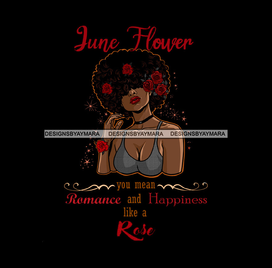 June Flower Ladies Lady Afro Hair Black Afro Woman Red Roses JPG PNG Clipart Cricut Silhouette Cut Cutting