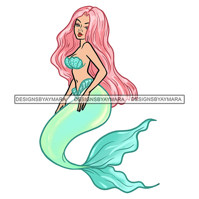Mermaid Green And Pink Long Hair JPG PNG Clipart Cricut Silhouette Cut Cutting