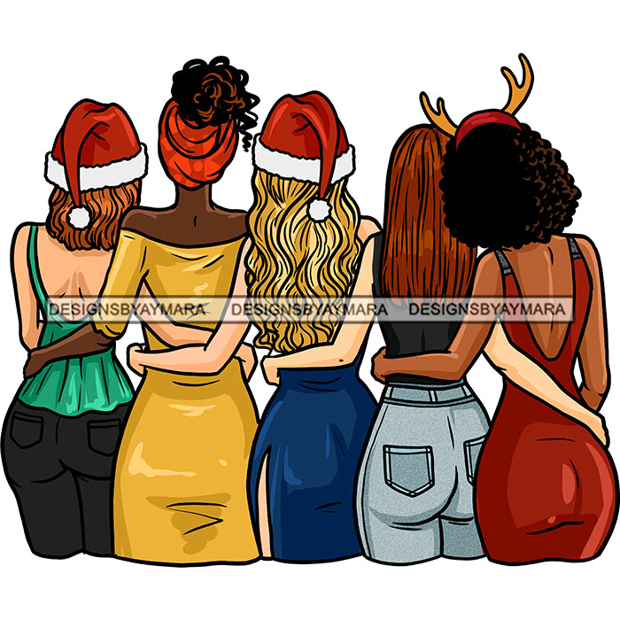 Sisters Best Friends 4 Ladies Santa Hats JPG PNG Clipart Cricut Silhouette Cut Cutting