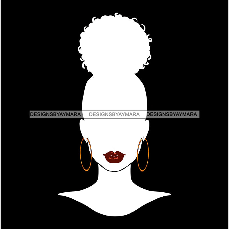 Woman Face Red Lips Hoop Earrings Afro Puff JPG PNG Clipart Cricut Silhouette Cut Cutting