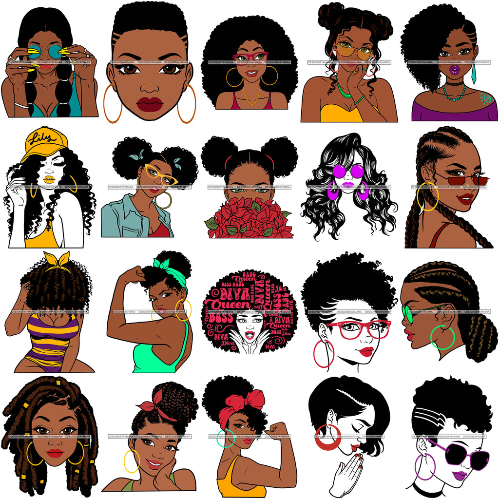 Bundle 20 Afro Woman SVG Hot Selling Designs Black Girl Magic Melanin Popping Hipster Girls SVG JPG PNG Layered Cutting Files For Silhouette Cricut and More