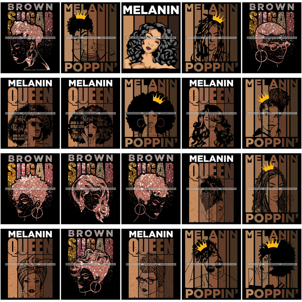 Bundle 20 Brown Sugar Melanin Queen Quotes Layered SVG Black Girl Magic Melanin Popping Hipster Girls SVG JPG PNG Cutting Files For Silhouette Cricut and More