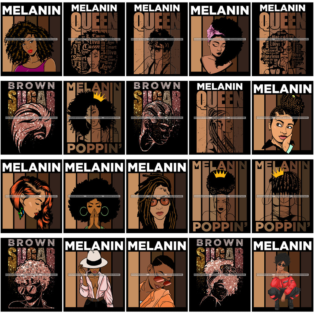 Bundle 20 Brown Sugar Melanin Quotes Layered SVG Black Girl Magic Melanin Popping Hipster Girls SVG JPG PNG Cutting Files For Silhouette Cricut and More