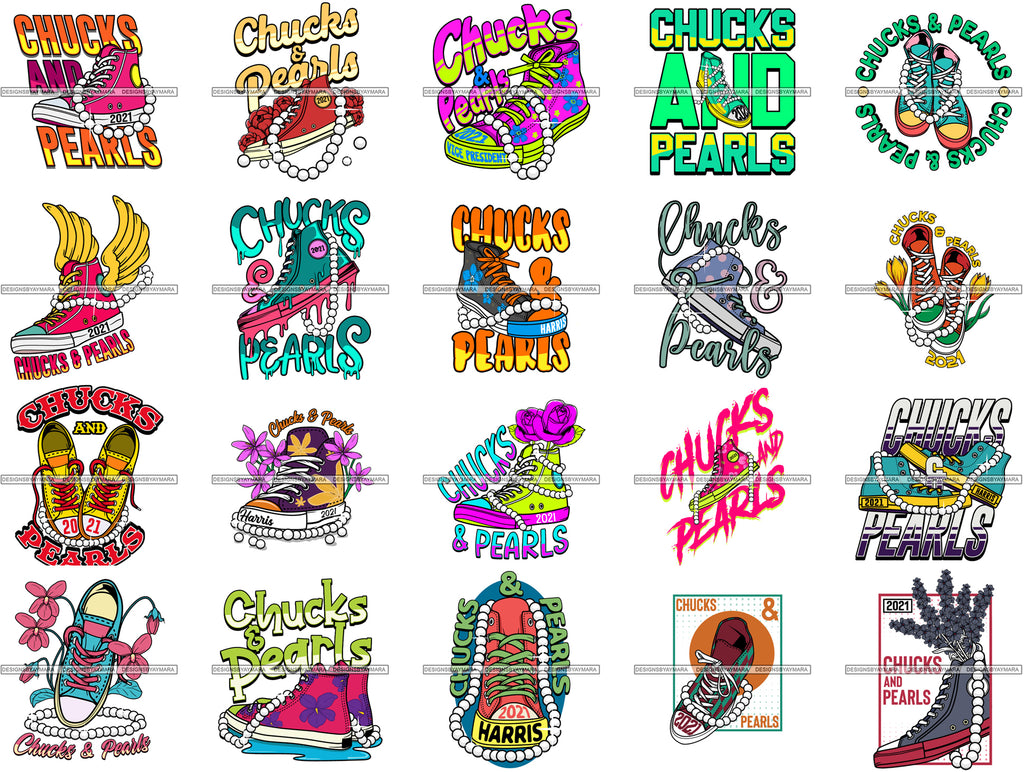 Bundle 20 Chucks and Pearls 2021 Inauguration Designs Woman Power Vice President Kamala Harris SVG Cutting Files For Silhouette Cricut and More