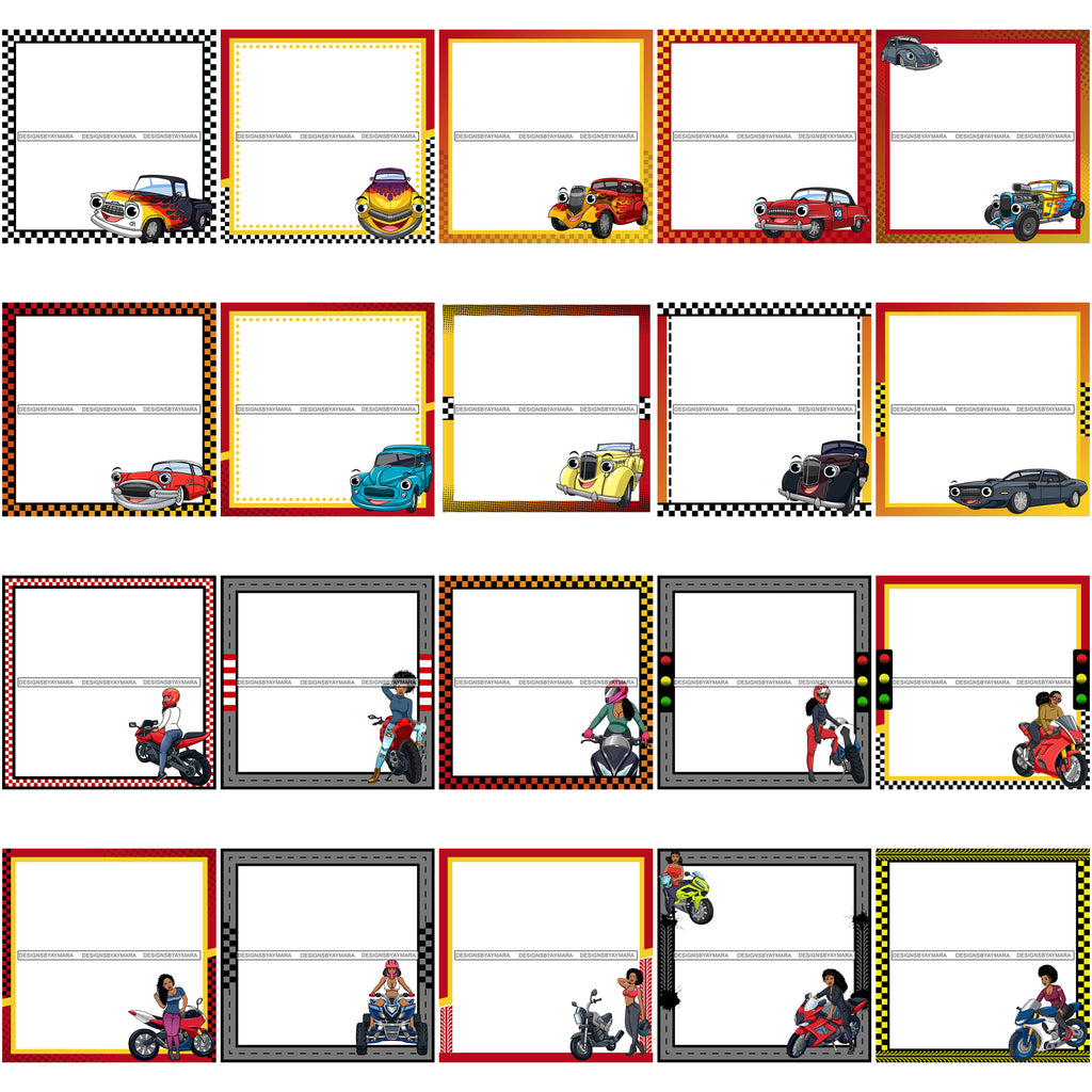 Bundle 20 Cute Decoration Frames Banners Automobile Cartoon Cars Motorcycle Transportation SVG JPG PNG Vector Clipart Cricut Silhouette Cut Cutting