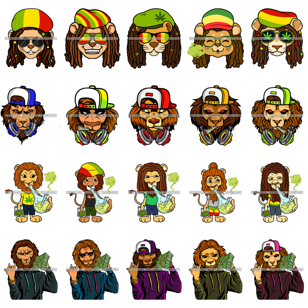 Bundle 20 Rasta Lion Smoking Bong Gangster Money Talks SVG JPG PNG Vector Designs Clipart For Cricut Silhouette Cut Cutting and More!
