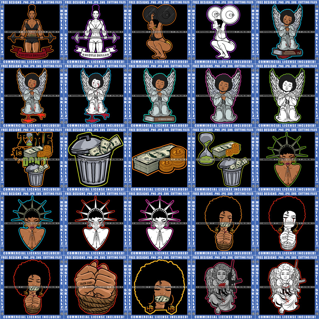 Bundle 25 Bodybuilding Woman Strong Weight Lifting Angel Praying Gangster Angel Mix Bundle SVG PNG JPG Cut Files For Silhouette Cricut and More!