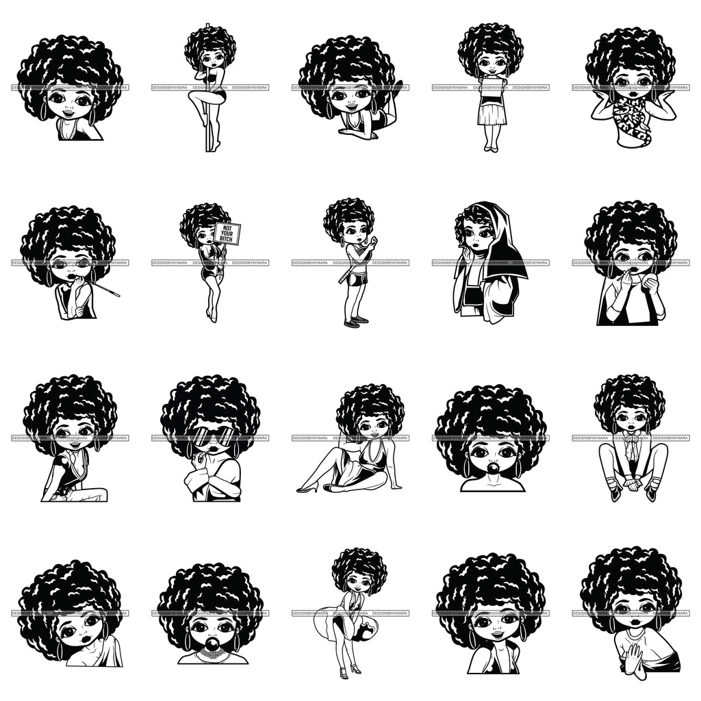 Bundle 20 Afro Cute Girl Black Woman Sexy Afro Puff Hairstyle Exotic Glamour SVG PNG JPG Cutting Files For Silhouette Cricut Cut Cutting
