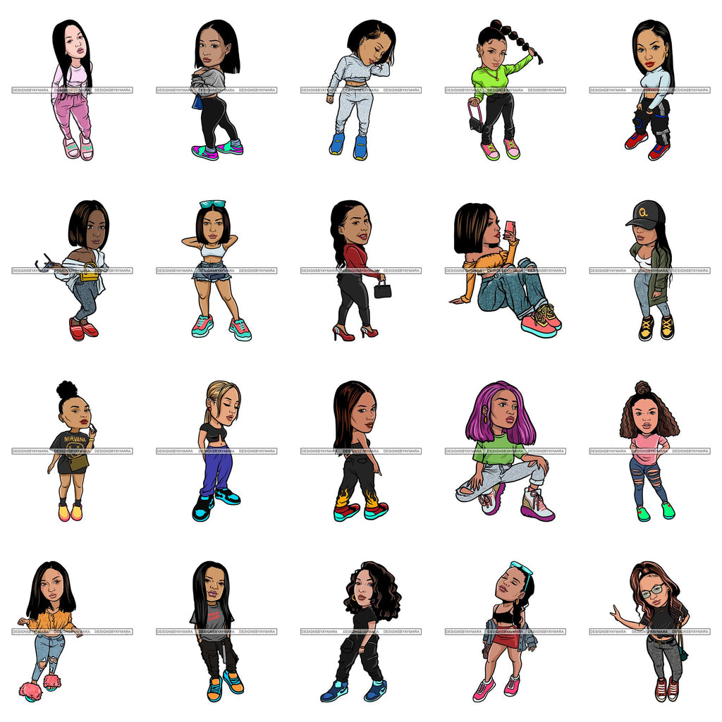 Bundle 20 Fashion Woman Model Posing Summer Outfit Vogue Goddess Glamour Trendy Clothing Vector SVG Cutting Files