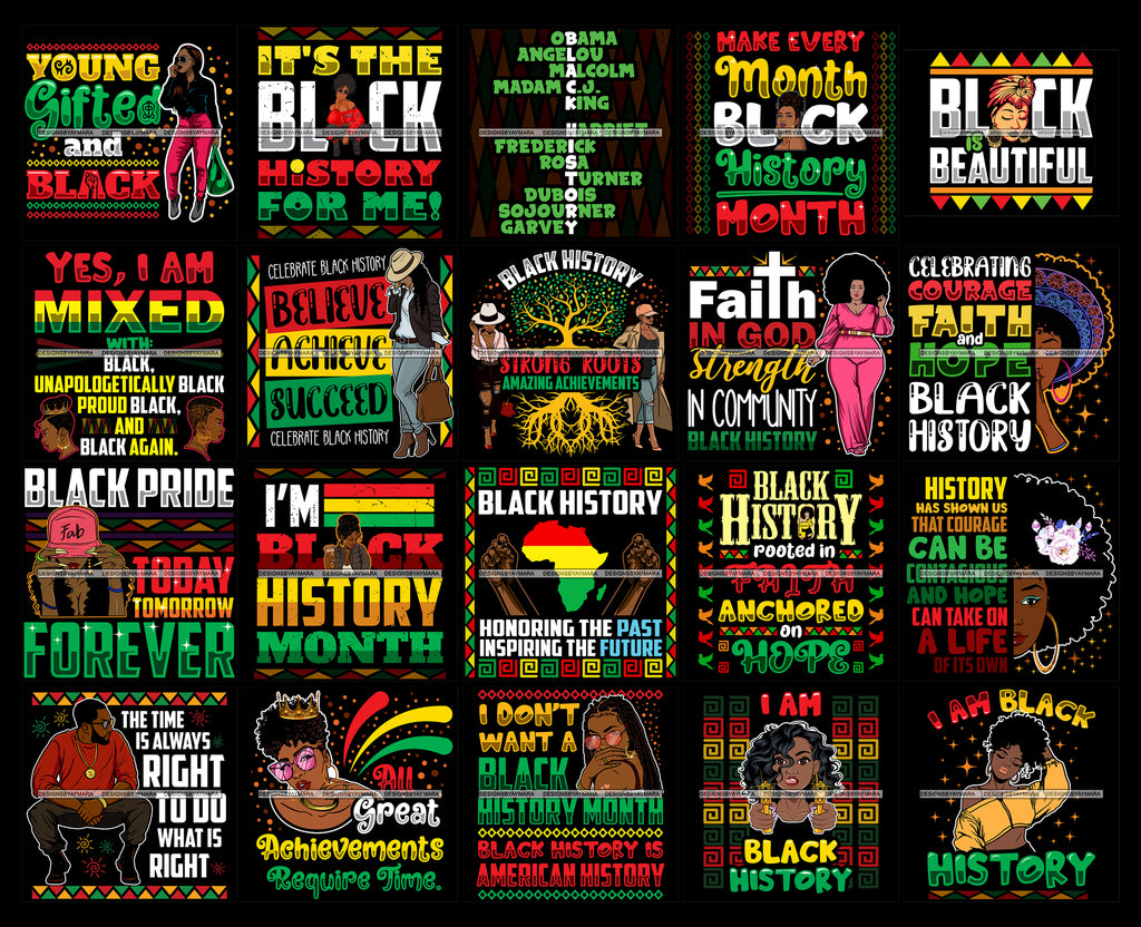 Bundle 20 I'm Black History Month Quotes Proud Roots African American Culture Celebration Melanin Pride SVG Clipart Vector Designs Cutting Files For Circuit Silhouette Cricut and More!