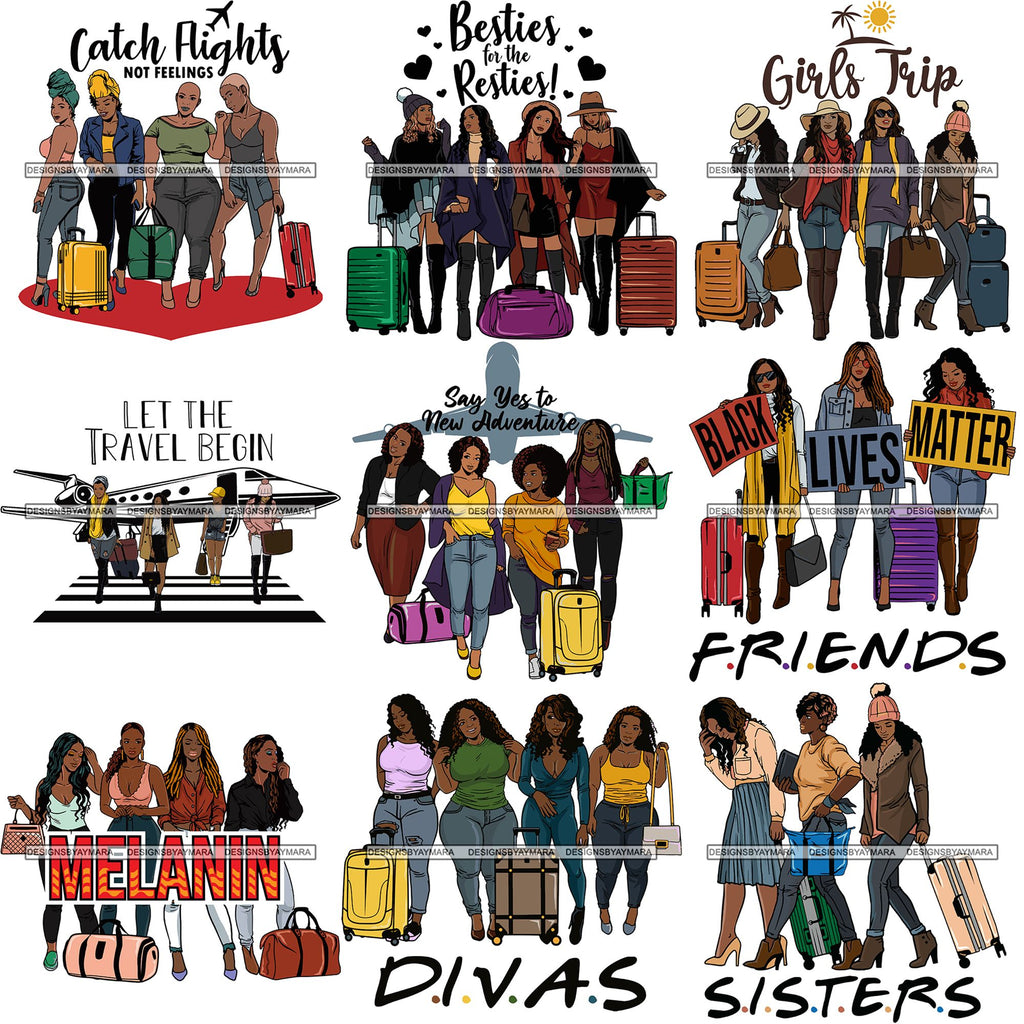 Bundle 20 Ladies Getaway Vacation Trip Travel Adventure Best Friends Forever Buddy Sister Divas Melanin Girlfriends SVG Files For Cutting and More!
