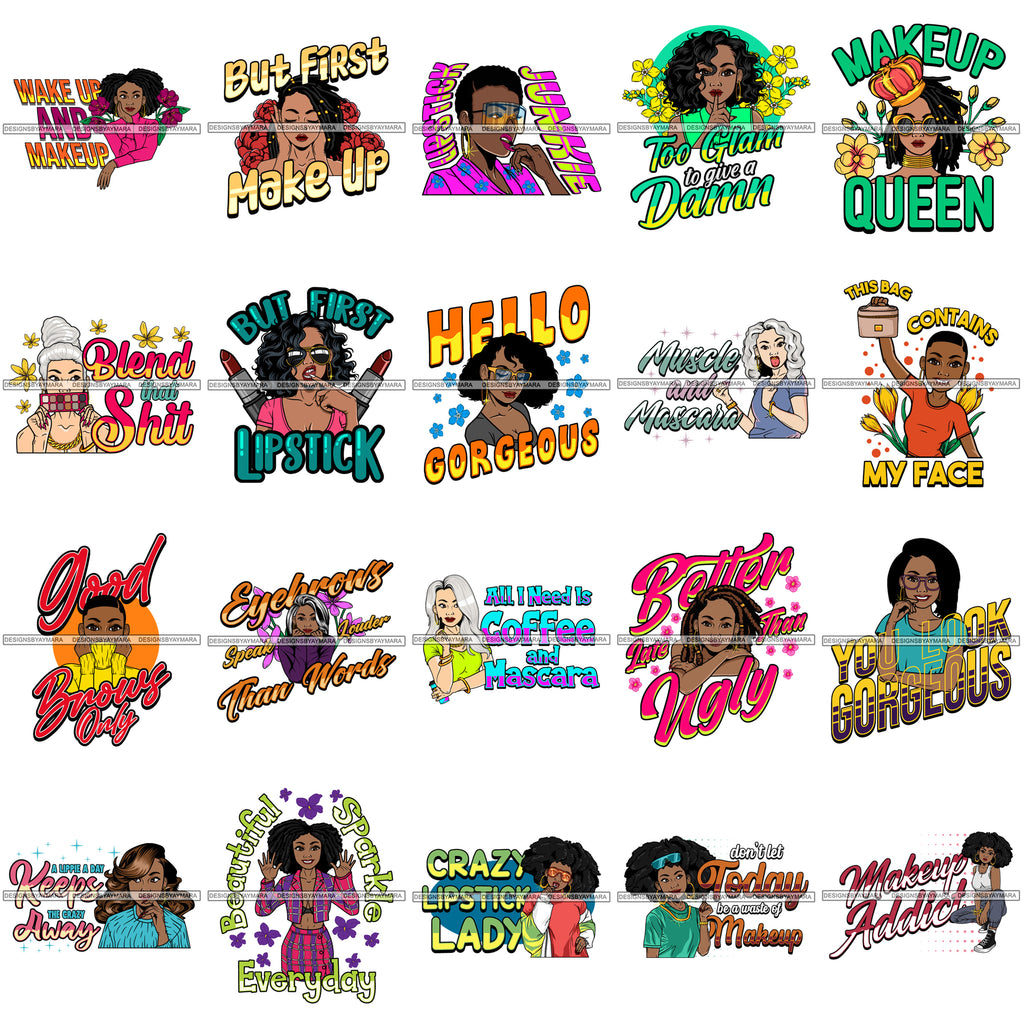 Bundle 20 Melanin Make Up Lipstick Beauty Quotes Queen Brown Sugar Dope Diva .SVG Cut Files For Silhouette Cricut and More!