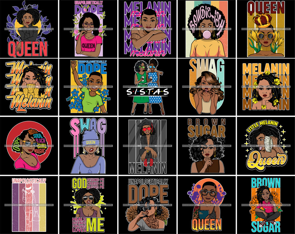 Bundle 20 Melanin Queen Afro Black Woman Quotes Black Background Brown Sugar .SVG Cut Files For Silhouette Cricut and More!