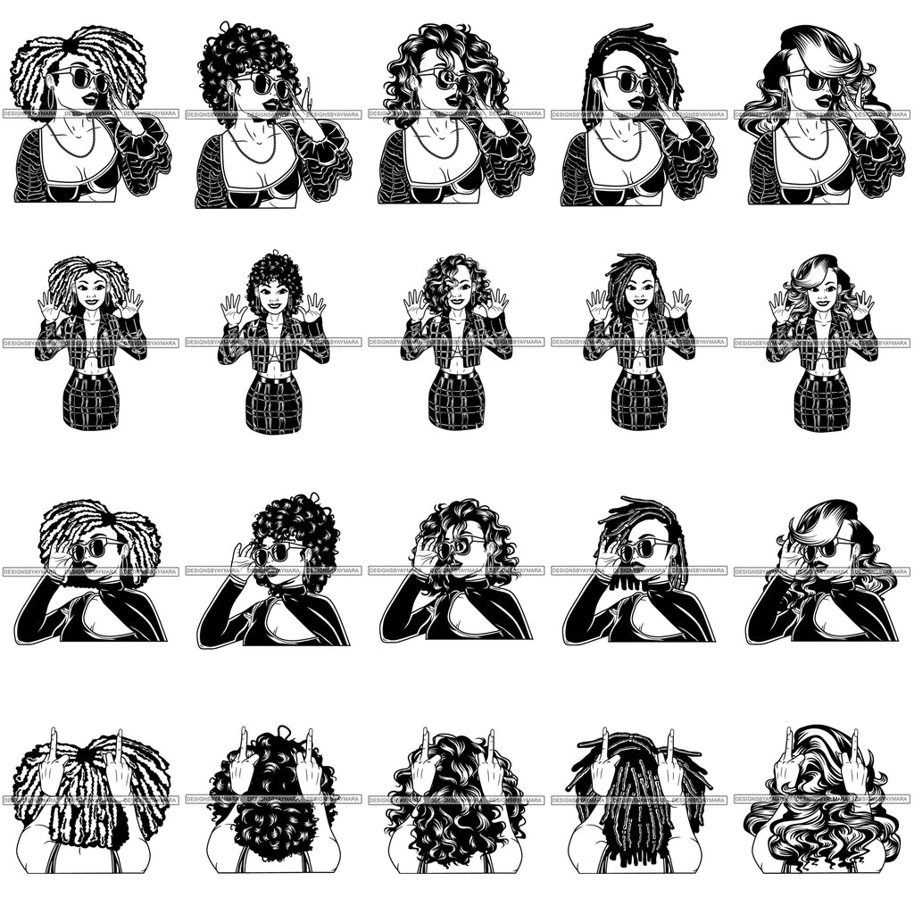 Bundle 20 Afro Lola Middle Finger Fashion Diva .SVG Cut Files For Silhouette Cricut and More!