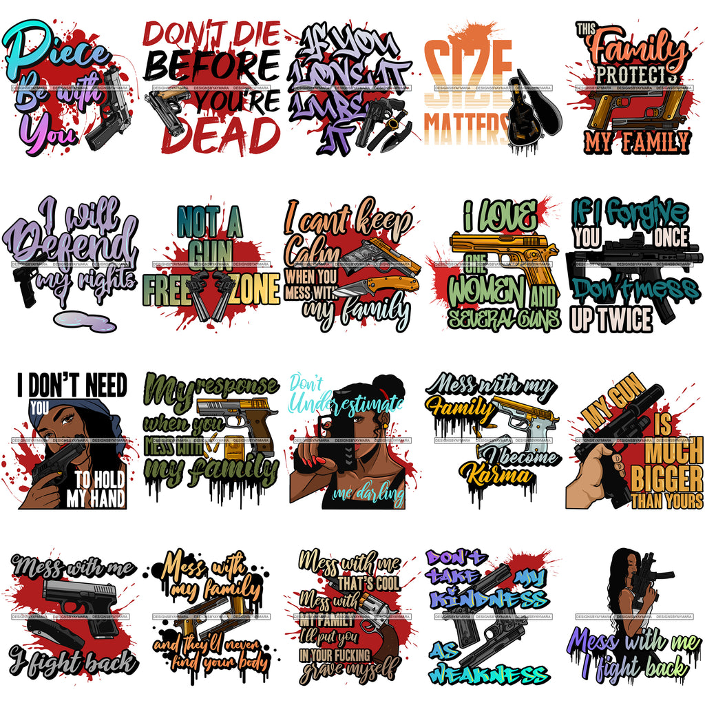 Bundle 20 Protection Quotes Hand Gun Riffle Family Protect Vector Designs For T-Shirt and Other Products SVG PNG JPG Cut Files For Silhouette Cricut and More!