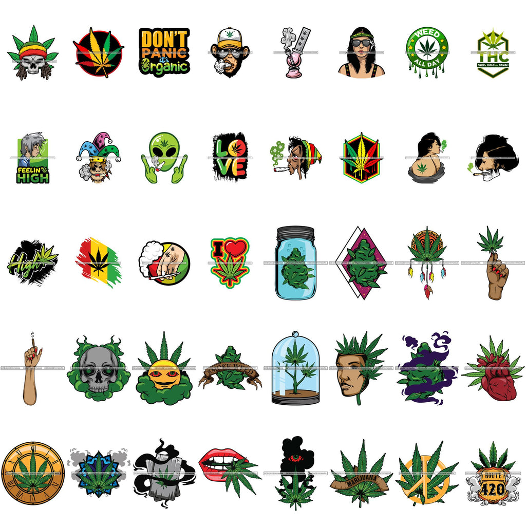 Bundle 40 Weed Leaf Grass Medical Marijuana Hemp Pot Joint Blunt Cannabis Hashish Stoned High Life SVG Cutting Files