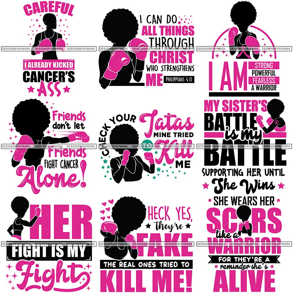Bundle 9 Strong Afro Woman SVG Cancer Survivor Cutting Files For Silhouette Cricut and More