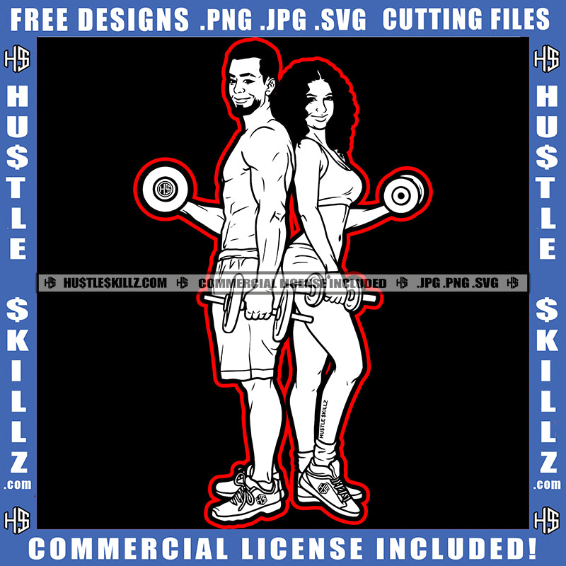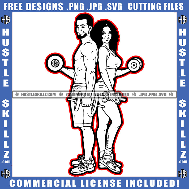 African American Fitness Couple Vector Standing With Dumbbell On Hand Vector Fitness Design Element Nubian Bodybuilder Couple Clipart JPG PNG SVG
