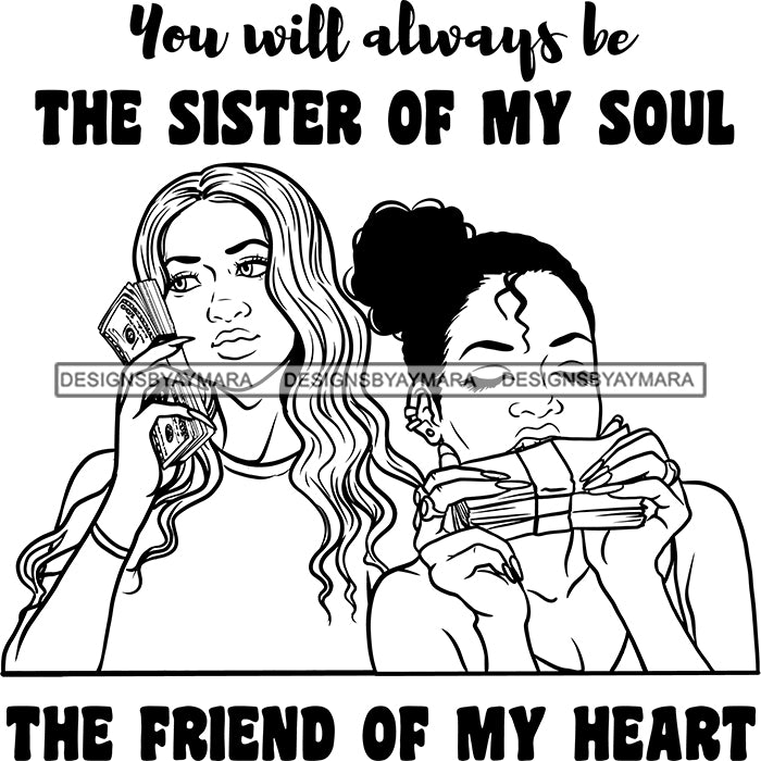 Beautiful Afro Women Best Friends Love Quote Lovely Relationship Illustration B/W SVG JPG PNG Vector Clipart Cricut Silhouette Cut Cutting