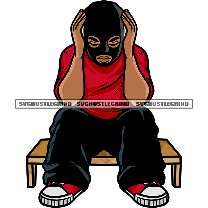 Afro Man Sitting Thinking Pose Wearing Ski Mask Design Element African American Gangster Man SVG JPG PNG Vector Clipart Cricut Silhouette Cut Cutting