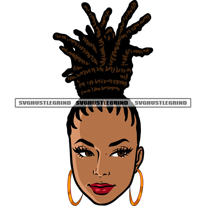 Cute Black Beauty Girls Face Design Element Wearing Hoop Earing Smile Face Locus Short Hairstyle White Background SVG JPG PNG Vector Clipart Cricut Silhouette Cut Cutting