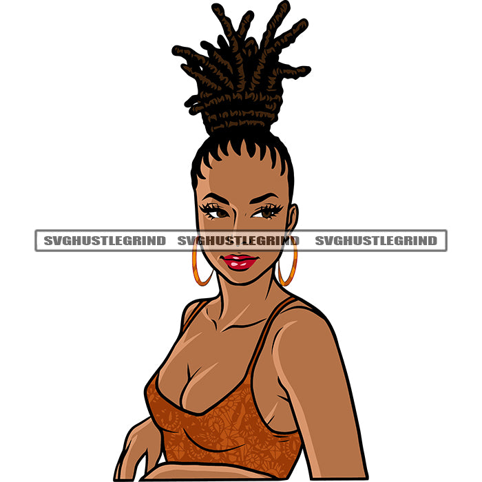 Sexy African American Woman Face Wearing Hoop Earing Locus Short Hairstyle Smile Face Design Element White Background SVG JPG PNG Vector Clipart Cricut Silhouette Cut Cutting