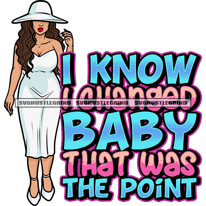 I Know I Changed Baby That Was The Point Quote Sexy Plus Size Woman Standing And Wearing Cowboy Hat And White Dress Afro Long Hairstyle Design Element White Background Hide Eyes SVG JPG PNG Vector Clipart Cricut Silhouette Cut Cutting