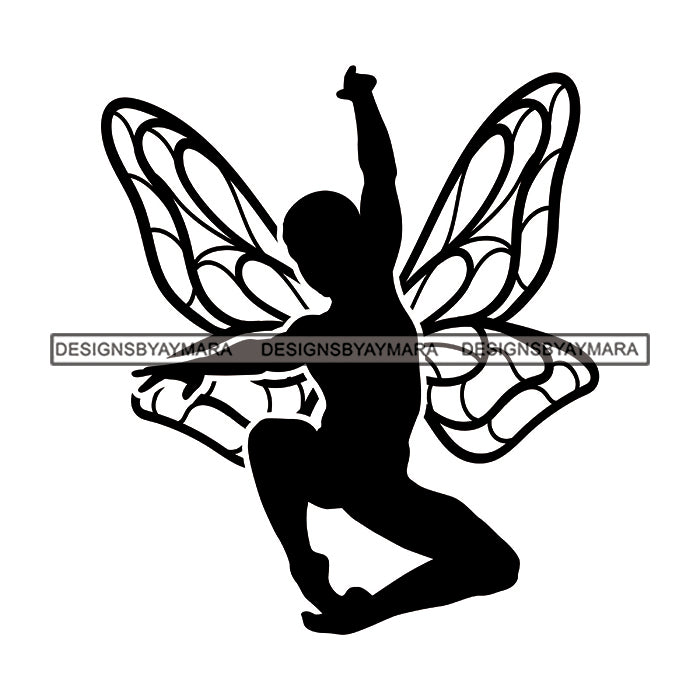 Fairy Male Man Wings Flying Fantasy Dancing Butterfly Wings B/W SVG JPG PNG Vector Clipart Cricut Silhouette Cut Cutting