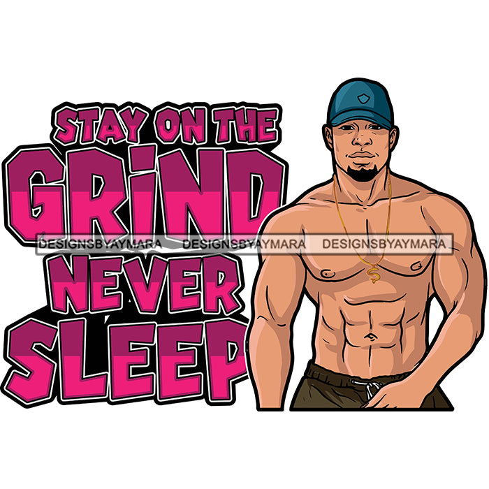 Sexy Afro Man Hustle Quote Shirtless Dollar Sign Necklace Baseball Cap Style SVG JPG PNG Vector Clipart Cricut Silhouette Cut Cutting