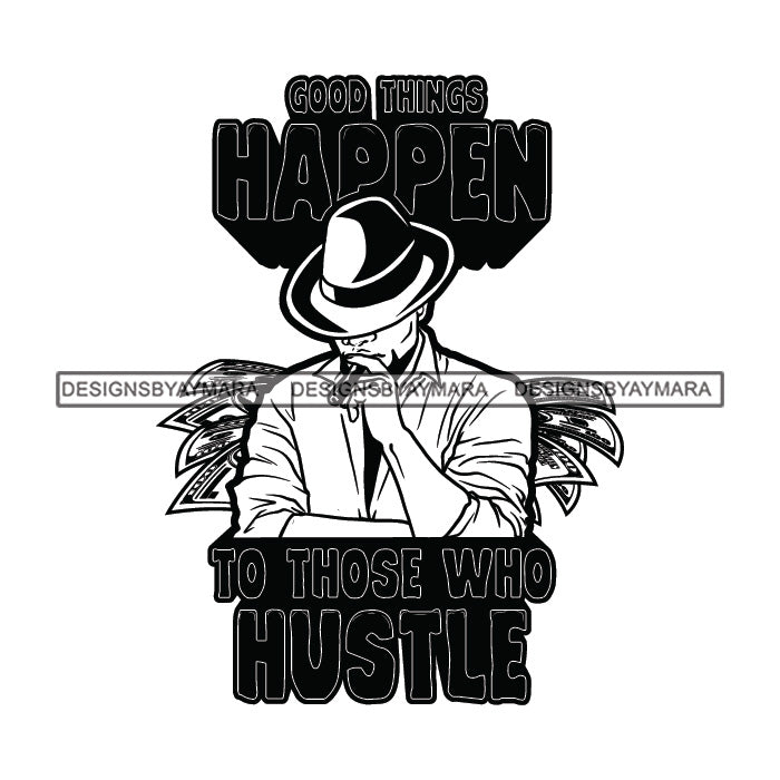 Sexy Black Man Hustle Quote Head Down Smoking Cigar Classic Hat Fashion Style B/W SVG JPG PNG Vector Clipart Cricut Silhouette Cut Cutting