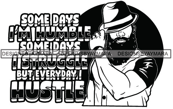 Sexy Black Man Hustle Quote Bearded Earring Classic Hat Watch Fashion Style B/W SVG JPG PNG Vector Clipart Cricut Silhouette Cut Cutting