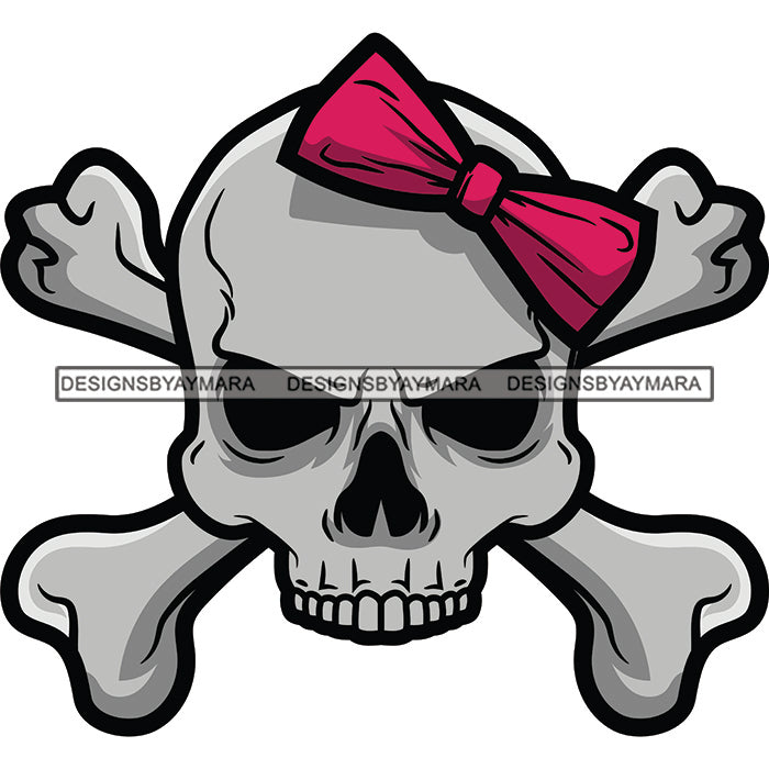 Cute Female Skull Bow Head Skeleton Dead Death Tattoo Ideas SVG PNG JPG Cut Files For Silhouette Cricut and More!