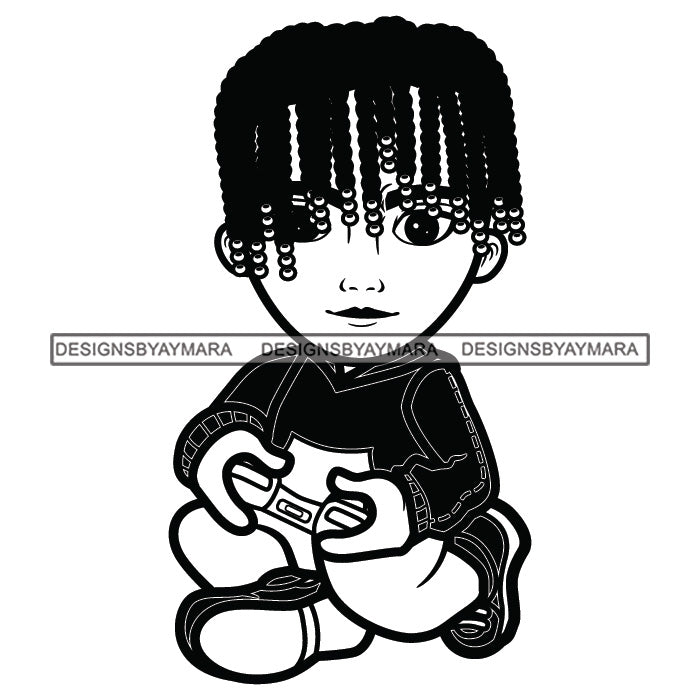Teenager Boy Sitting Floor Playing Video Game Everyday Every Weekend Illustration B/W SVG JPG PNG Vector Clipart Cricut Silhouette Cut Cutting
