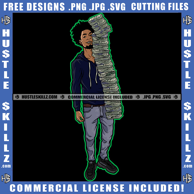 African American Gangster Man Standing Design Element Melanin Locs Dreads Hair Man Holding Money Hustler Hustling SVG JPG PNG Vector Clipart Cricut Cutting Files