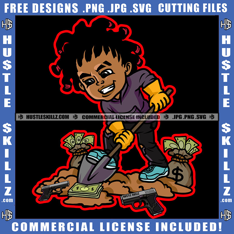African American Locs Dreads Hair Girl To Dig Smile Face Design Element Melanin Nubian Girl Money And Gun On Floor Black Girl Magic Ski Mask Gangster SVG JPG PNG Vector Clipart Cricut Cutting Files
